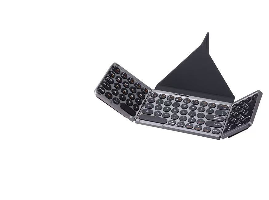 View DetailsTri-Fold Bluetooth Touch Keyboard | Quiet + Leather Storage Bag + Stand | Works with Phones/Laptops/Tablets/iPads