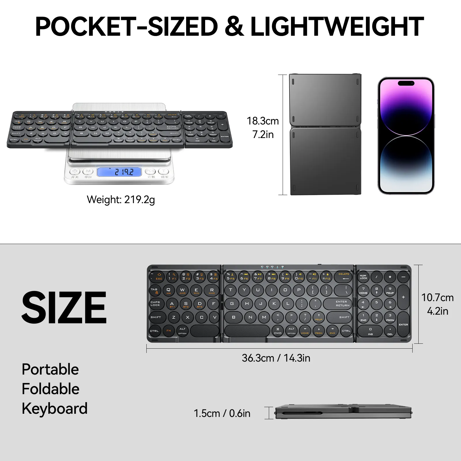 3-Segment Foldable: Palm-sized storage + magnetic leather case