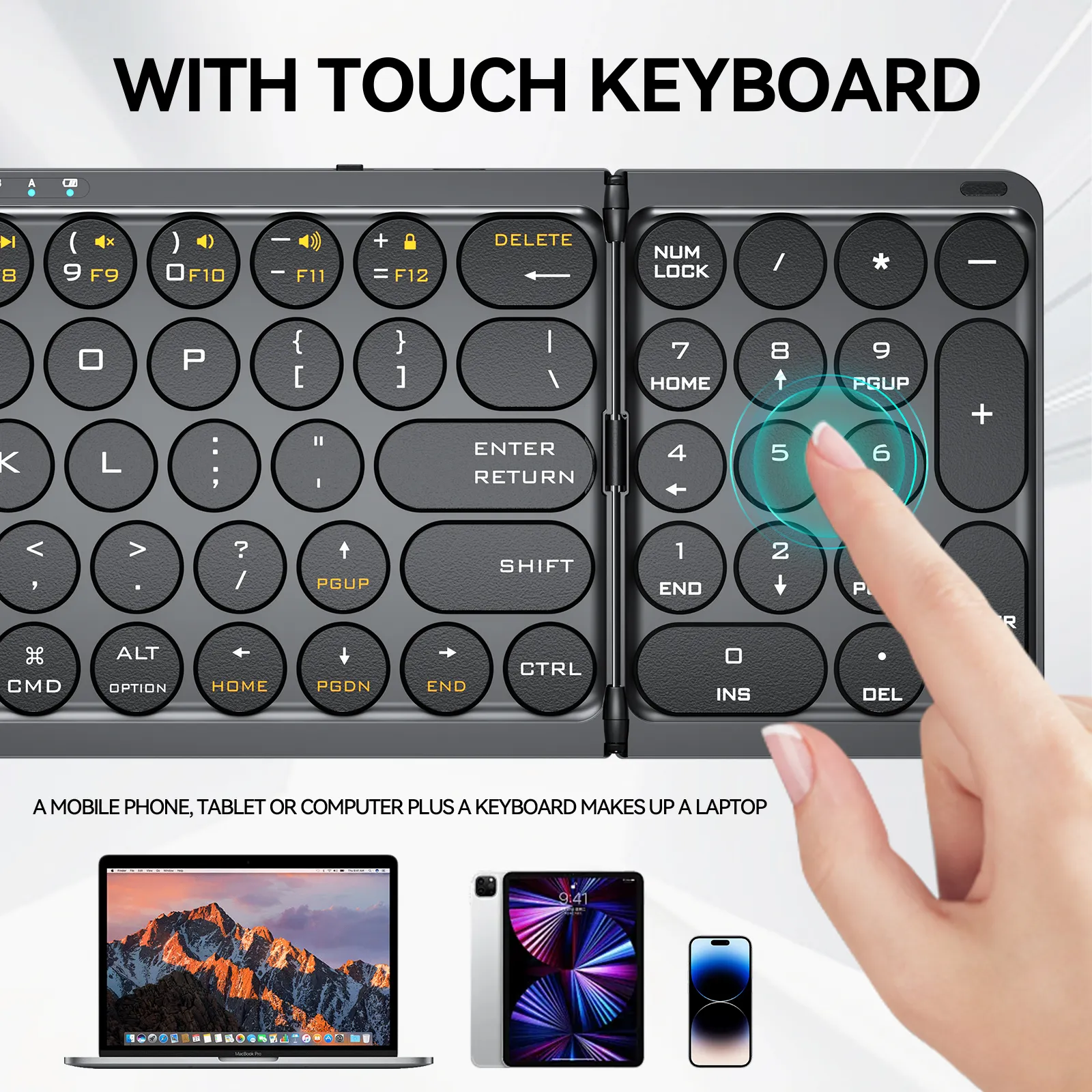 2-in-1 Touch Keyboard: Smooth gestures, boosts iPad/tablet/computer efficiency