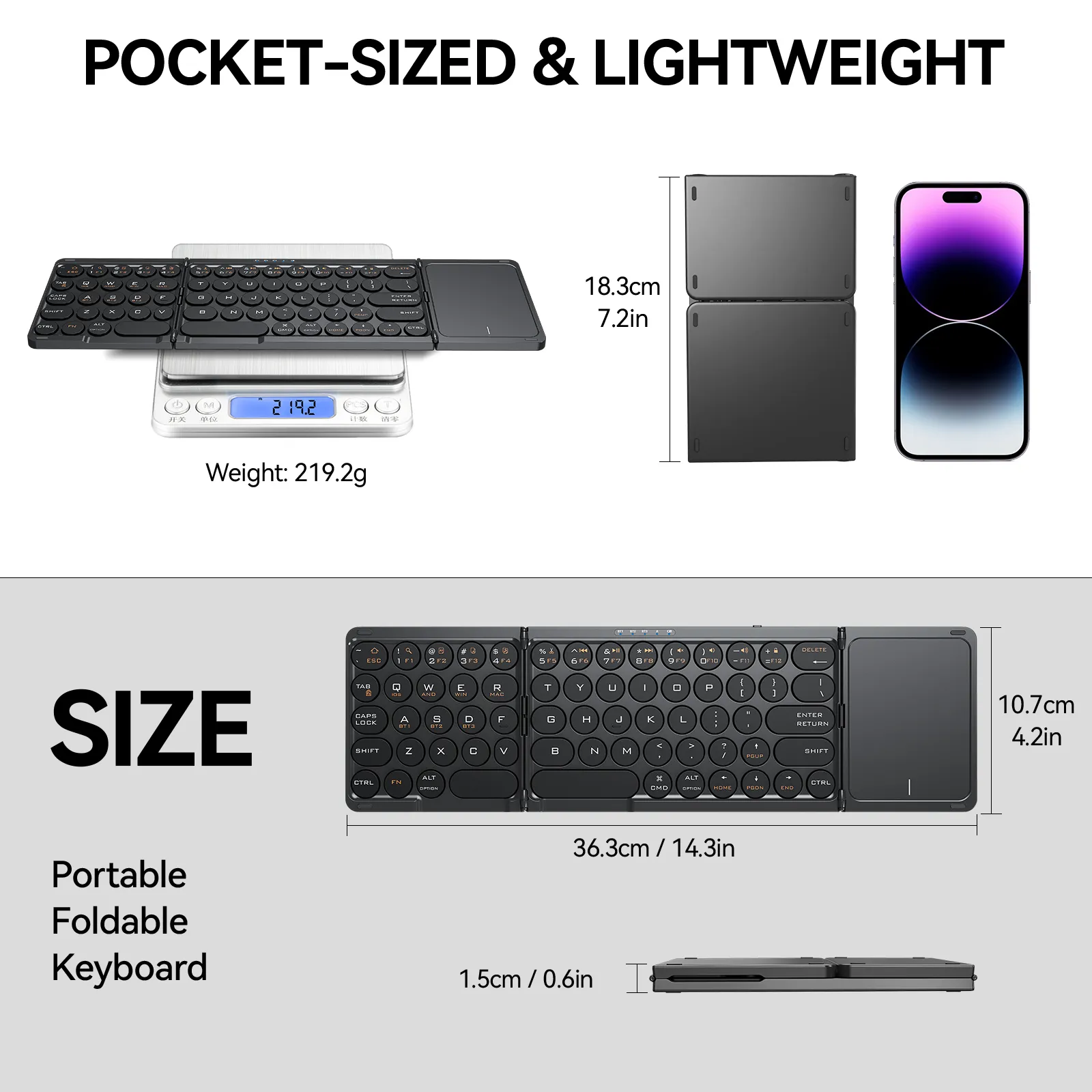 3-Segment Foldable: Palm-sized storage + magnetic leather case